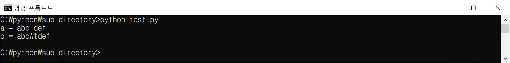 하지만, 문자열 앞에 r 을 붙이게 되면, 이스케이프 문자 그 자체를 문자로 인식한다.