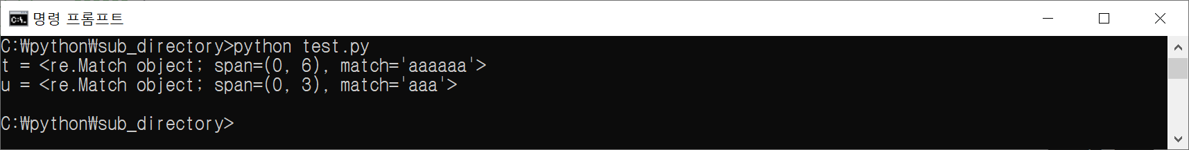 t = re.search(r'a{3,6}', 'aaaaaa')