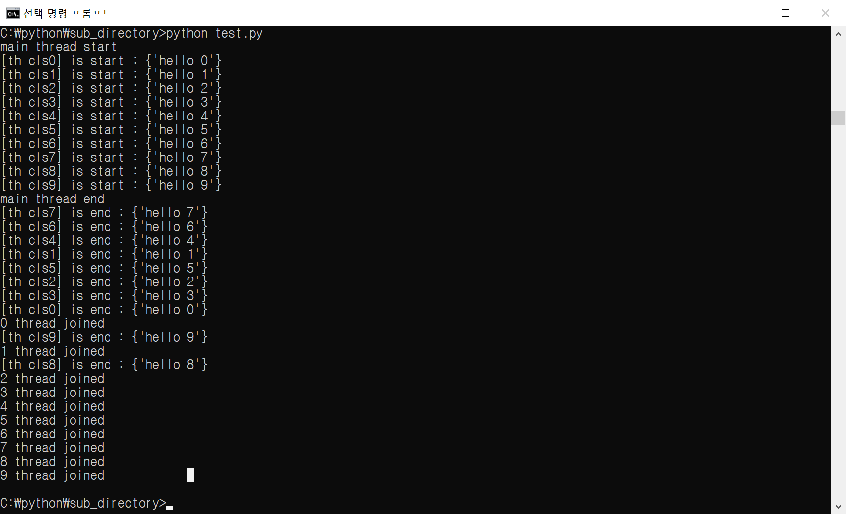 print(f'{i} thread joined')