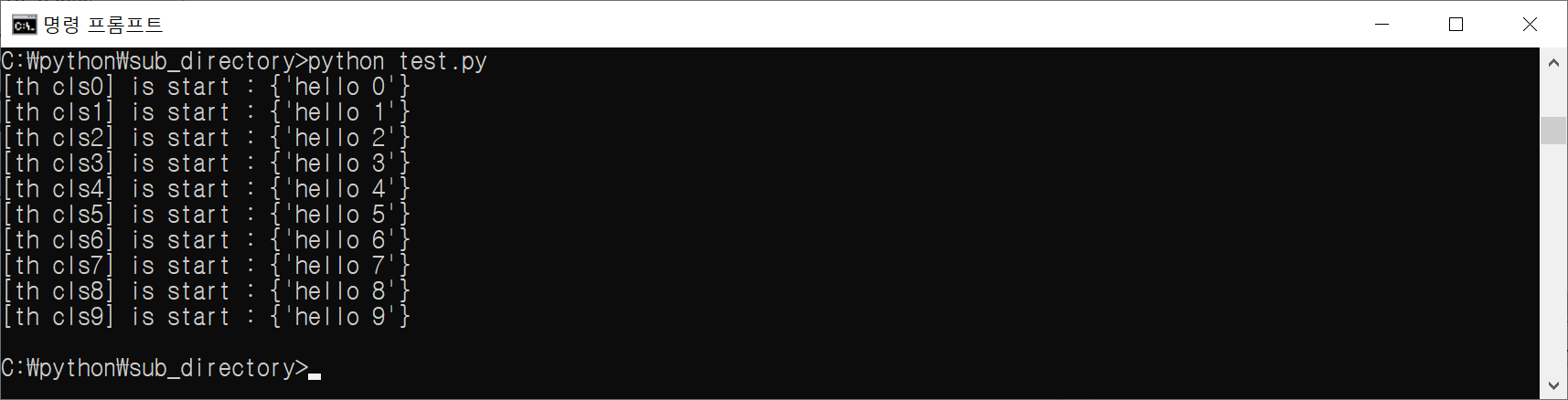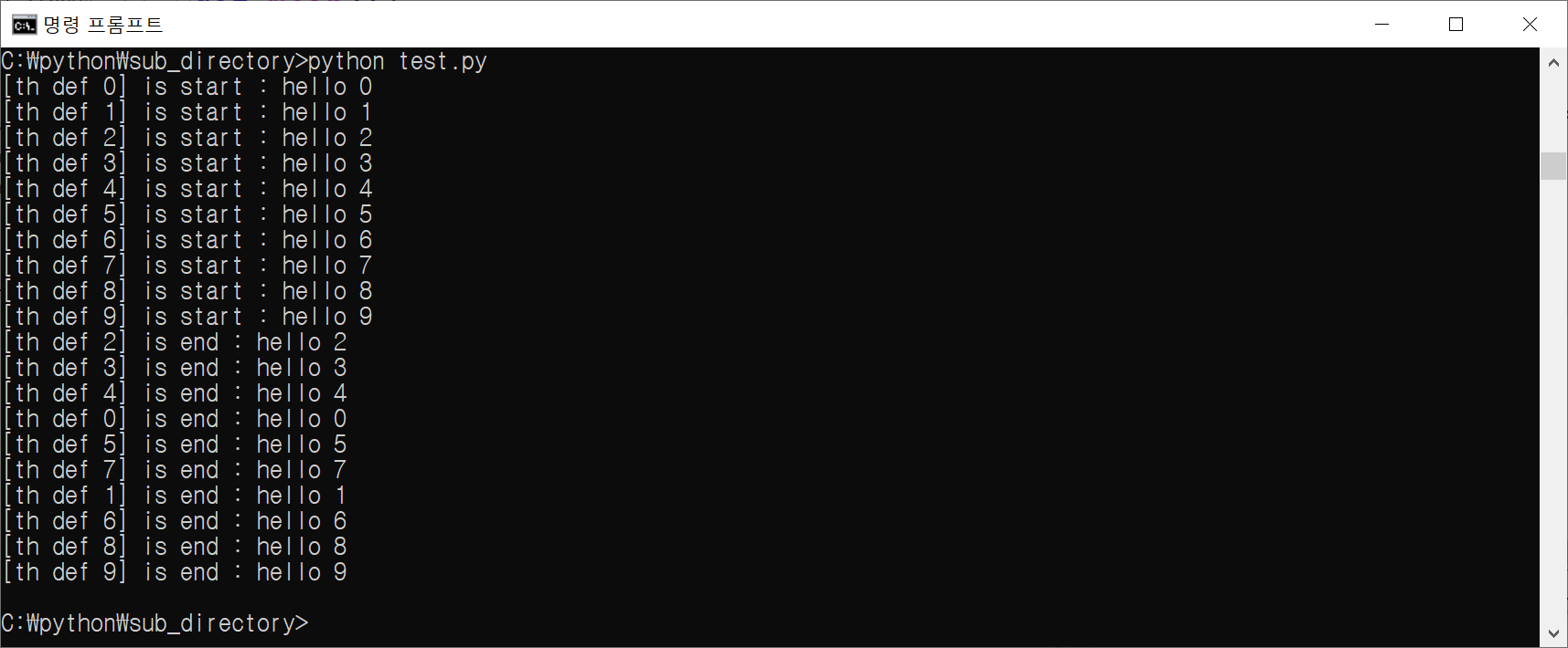 이후 daemon thread를 만들기 위해 "th[i].daemon = True" 를 수행하고, th[i].start() 함수를 사용하여 순차적으로 thread의 run() 함수를 호출한다.