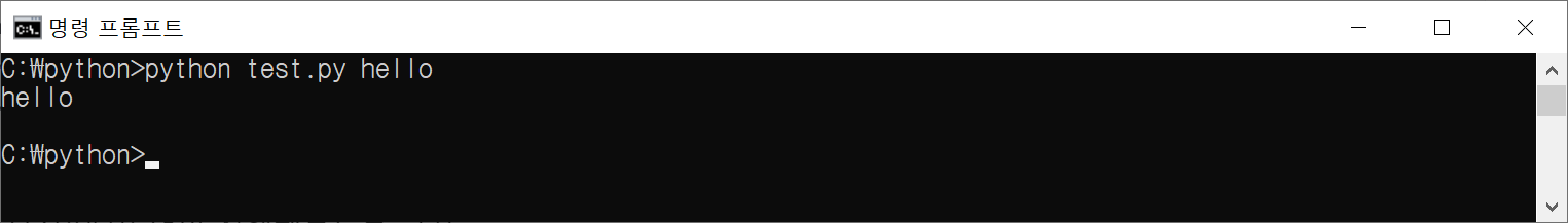 이제 옵션(인자) "hello" 를 추가하여 실행해보자