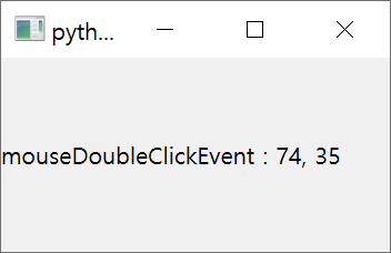 self.label.setText("mouseDoubleClickEvent : " + str(e.pos().x()) + ", " + str(e.pos().y()))