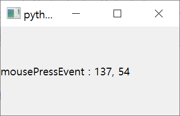 self.label.setText("mousePressEvent : " + str(e.pos().x()) + ", " + str(e.pos().y()))