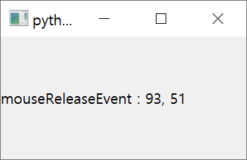 self.label.setText("mouseReleaseEvent : " + str(e.pos().x()) + ", " + str(e.pos().y()))