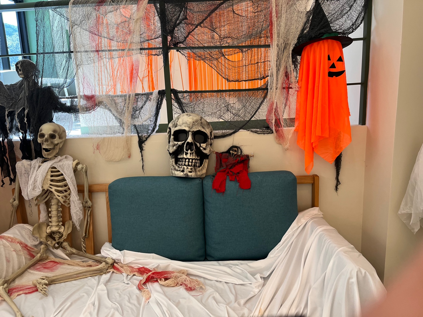 뒷편에 이런 할로윈 테마로한 공간도 있다. 생전 처음보는 인형들에 아들이 다소 경직되었다.
