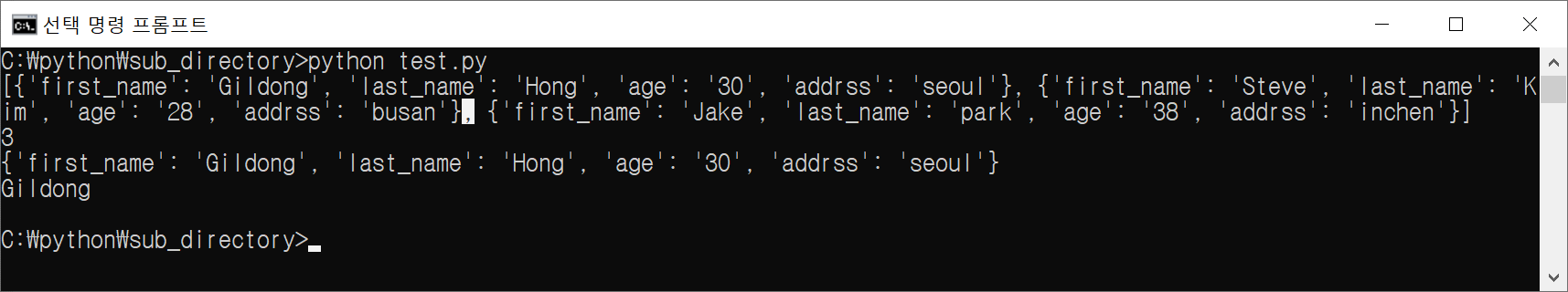 위 예제를 통해 json.load로 읽어온 데이터를 어떻게 접근하는지 확인할 수 있다.